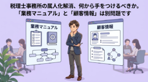 ・事務所内分業型→立ち上げは楽だが、距離が近いためルール設計が緩くなりやすい。最初の一歩には向いているが、ルールを明文化しないと形骸化する。